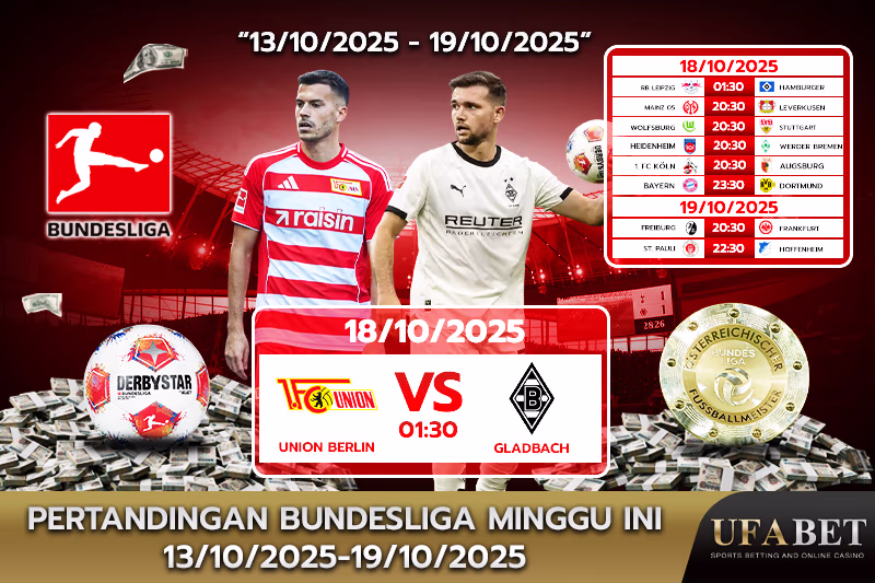 - SV Werder Bremen vs. 1. FC Union Berlin: SV Werder Bremen bertemu dengan 1. FC Union Berlin pada 01:30 GMT+7.
